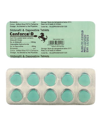 - Cenforce D används för behandling av erektil dysfunktion (ED) och för tidig ejaculation (PE). Läkemedlet fungerar genom att öka blodflödet till penis och fördröja ejakulationen.